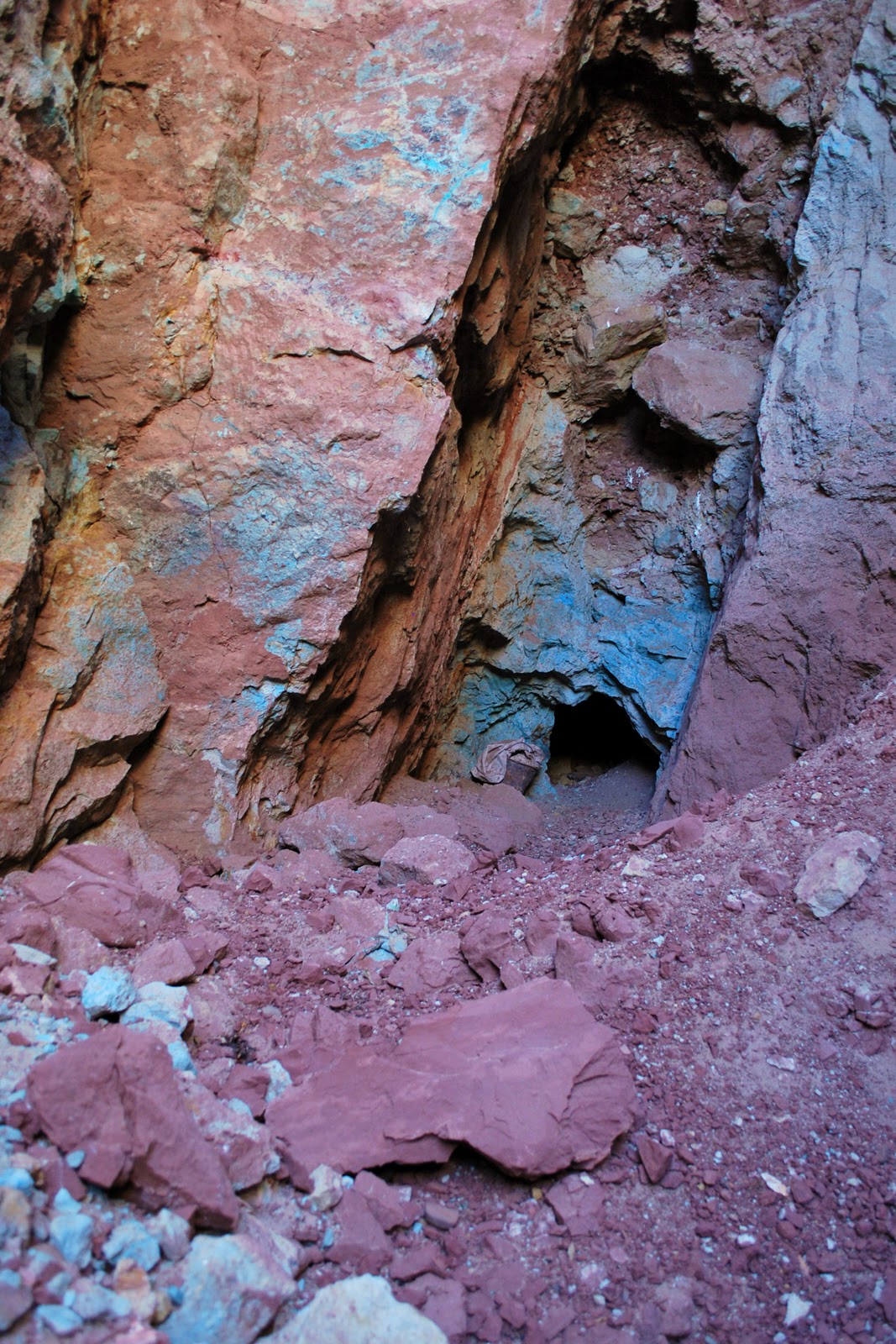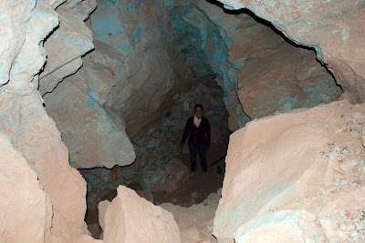 This video is of us squeezing (literally) through a small hole between levels. There is only one exit to the mine, so everywhere we went down we knew were coming back up.