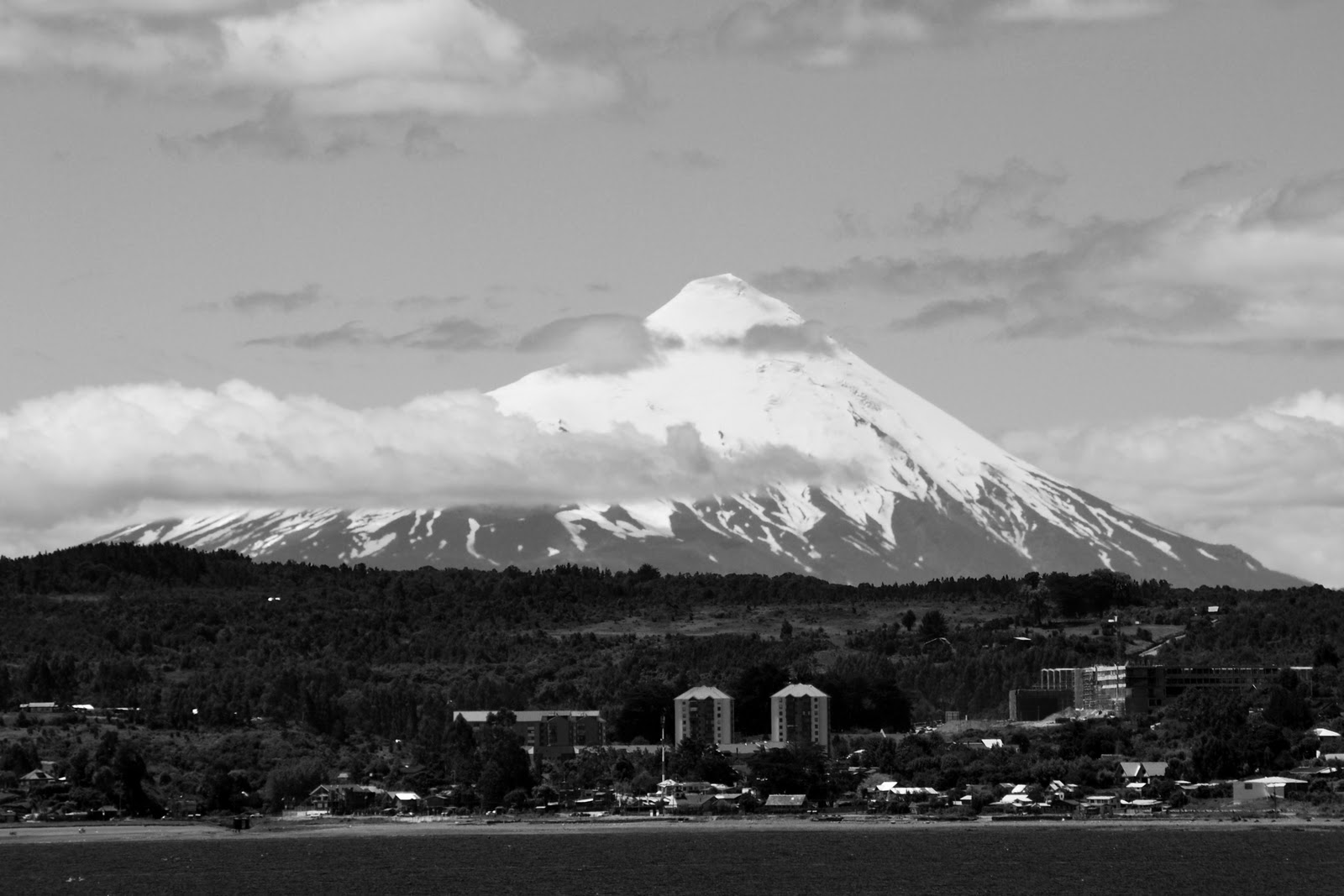 Friday morning around 10:30 we checked in at the Navimag ferry terminal and spent several hours playing the hurry-up-and-wait game. The boat departed around 2:00pm and we set off on our 4-day journey through the Patagonian Fjords. We got settled into our 4-bunk closet-sized dorm in the bottom of the boat, and decided we would be spending as little time as possible in the said closet. We saw many volcanoes on the first day, including one which has been smoking since 1994 (picture below, at dusk). We wandered around the boat feeling kind of lost and bored until we started to meet some other cool people on the boat. We then settled into our routine for the next four days; eat, stand on the deck until you are too cold and windblown to enjoy the sights any more, eat, nap, eat, play cards, drink wine, eat, sleep, repeat (or something like that). We played every imaginable card game with a pretty awesome group of people; Sam (UK), Jemma (UK), Will (Australia), Le Roux (South Africa), Gillian (UK), Lea and Natasha (Switzerland), Gary (UK) and got our share of entertainment from Lemy (a 60-year old farmer from Georgia, USA). You can click on the map to the left to enlarge it and see our path. Here are some views leaving Puerto Montt: