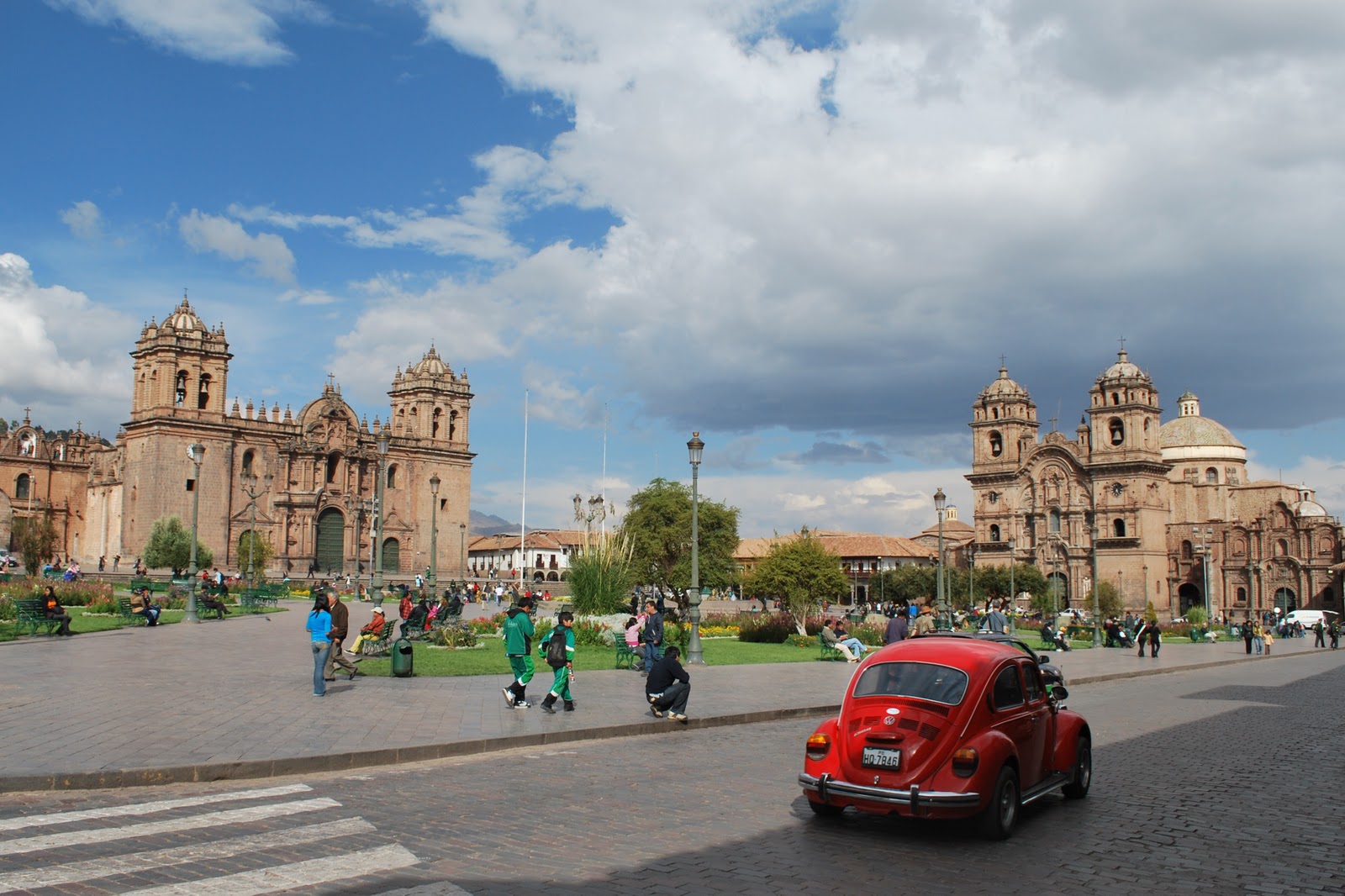 sauce with some sort of local berries and quinoa, and 2) lamb with red wine sauce, apples and roasted baby potatoes. We also split a bizarre Peruvian variety of cheesecake for desert and had some local wine as well. The whole deal set us back a whopping $12 each... quite the treat. We then wandered around trying to find a postbox for our 6 un-mailed postcards... quite the task! We ended up asking some policemen who were just standing around chatting and he kindly took us under his wing and found us a post-box (hidden inside a corner store).