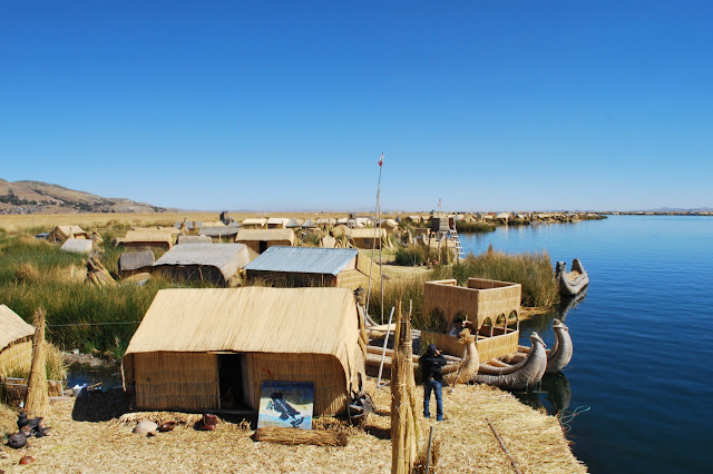 We stopped first at Uros, the famous "floating" islands made from layers of buoyant totora reeds. It was an interesting site, but the authenticity had definitely been damaged by tourism. As our guide book put it, the islands have become shockingly commercialized, though there is still nothing quite like them anywhere else, and it was worth the trip. The boat wouldn't start when we went to leave, but not to worry, the driver/ mechanic fiddled away at the engine until it would. If something doesn't work here, you just sit around until it does.