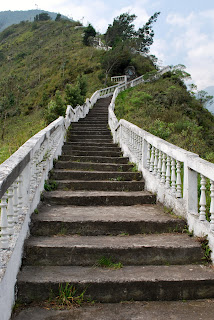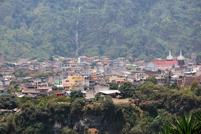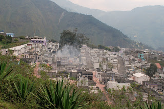 On day 2 in Banos we hiked up the 657 stairs to "La Virgen" statue which overlooked the town. The valley was very hazy both days, as you can see from the pictures. At the base of the climb was the local graveyard; a maze of little white buildings and cobblestone streets which was at first mistaken for a small village.