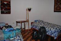 We have been amazed by the incredible value of the hostals in South America. So far all of our accomodations have exceeded our expectations, especially considering the most we have paid thus far is $10 a night (most have been $8)! Both in Banos and in Cuenca, we stayed in cute private rooms, with two beds & a private bathroom. Our hostal in Cuenca (La Cigale) even included a full breakfast. The only major flaw thus far was our first night in Cuenca, when we arrived at 1:30am from our night bus. A half-asleep hostal employee let us in, and [presumably, an accident] gave us keys to a room which hadn't been cleaned yet. He was gone by the time we noticed, and we were so tired, so we just let it go (but slept in our sleeping bags). The next morning he moved us to another room, but due to the language barrier we couldn't actually tell if he cared or not that he'd checked us into a dirty room.