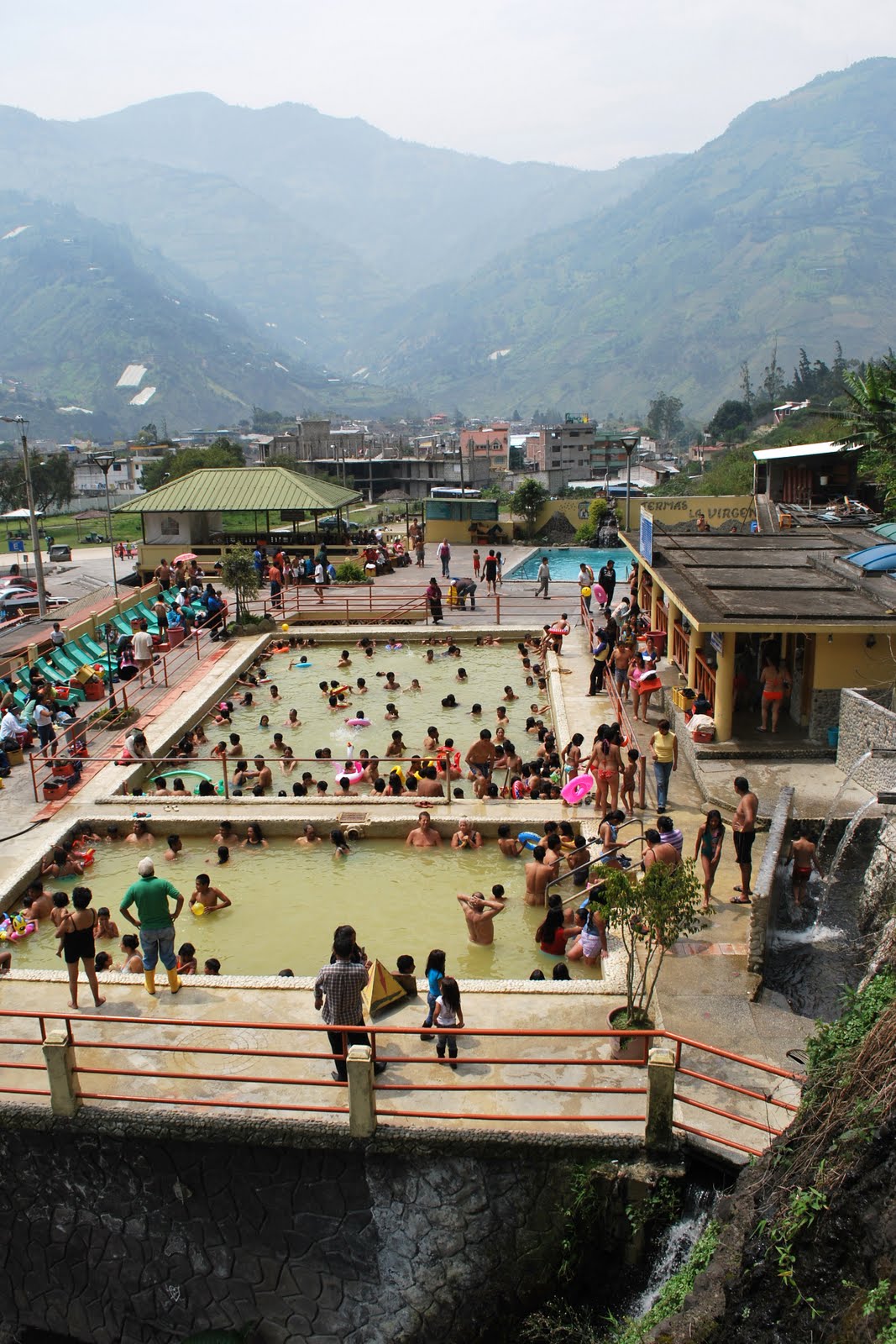 We felt that our adventurous week in the jungle warranted a day of R&R in Banos, so when our night bus arrived (at 6am!) we headed straight for the local thermal baths. The baths were situated under a waterfall, and consisted of several pools of varying temperatures. You could also dip right into the freezing waterfall water if you so desired. Even at 7am, the baths were crowded with locals, and we stood out horribly with our white skin & colorful bikinis.