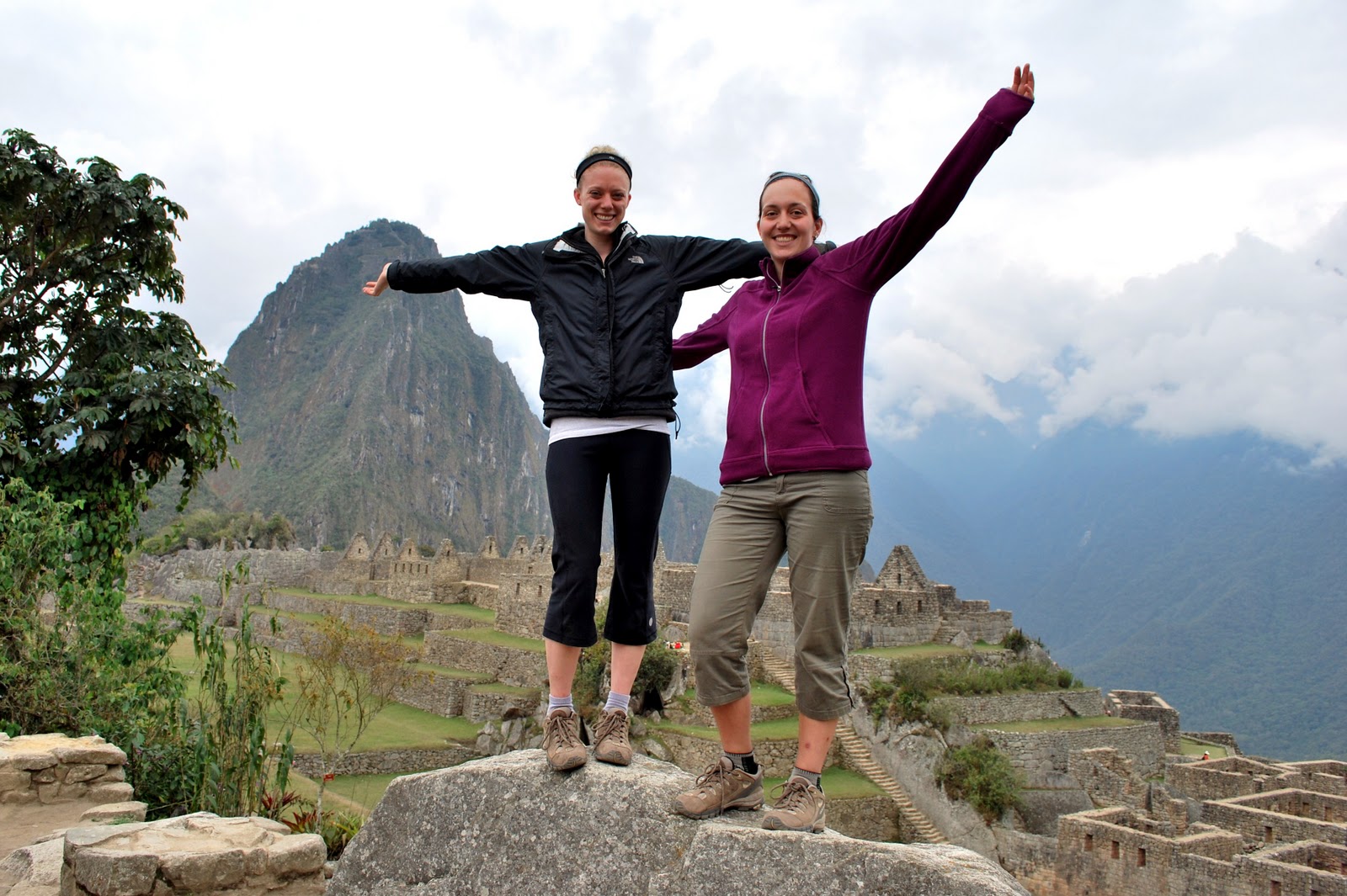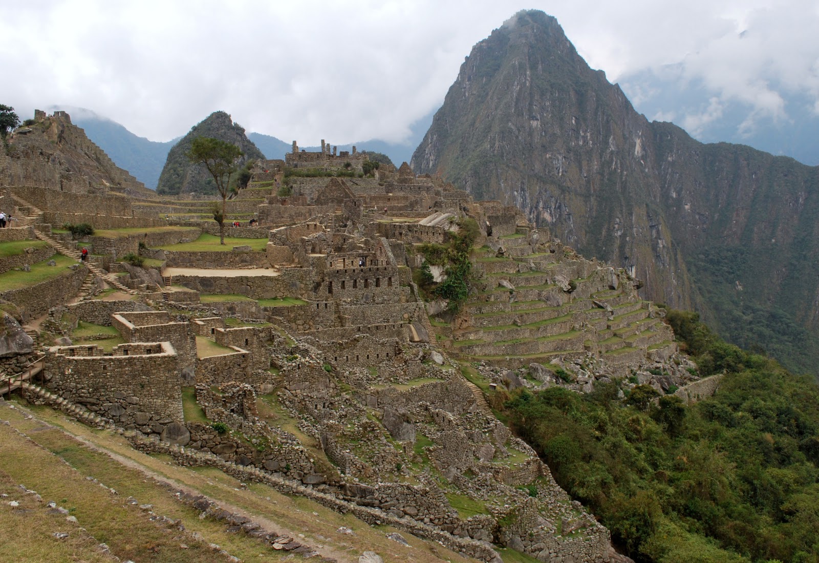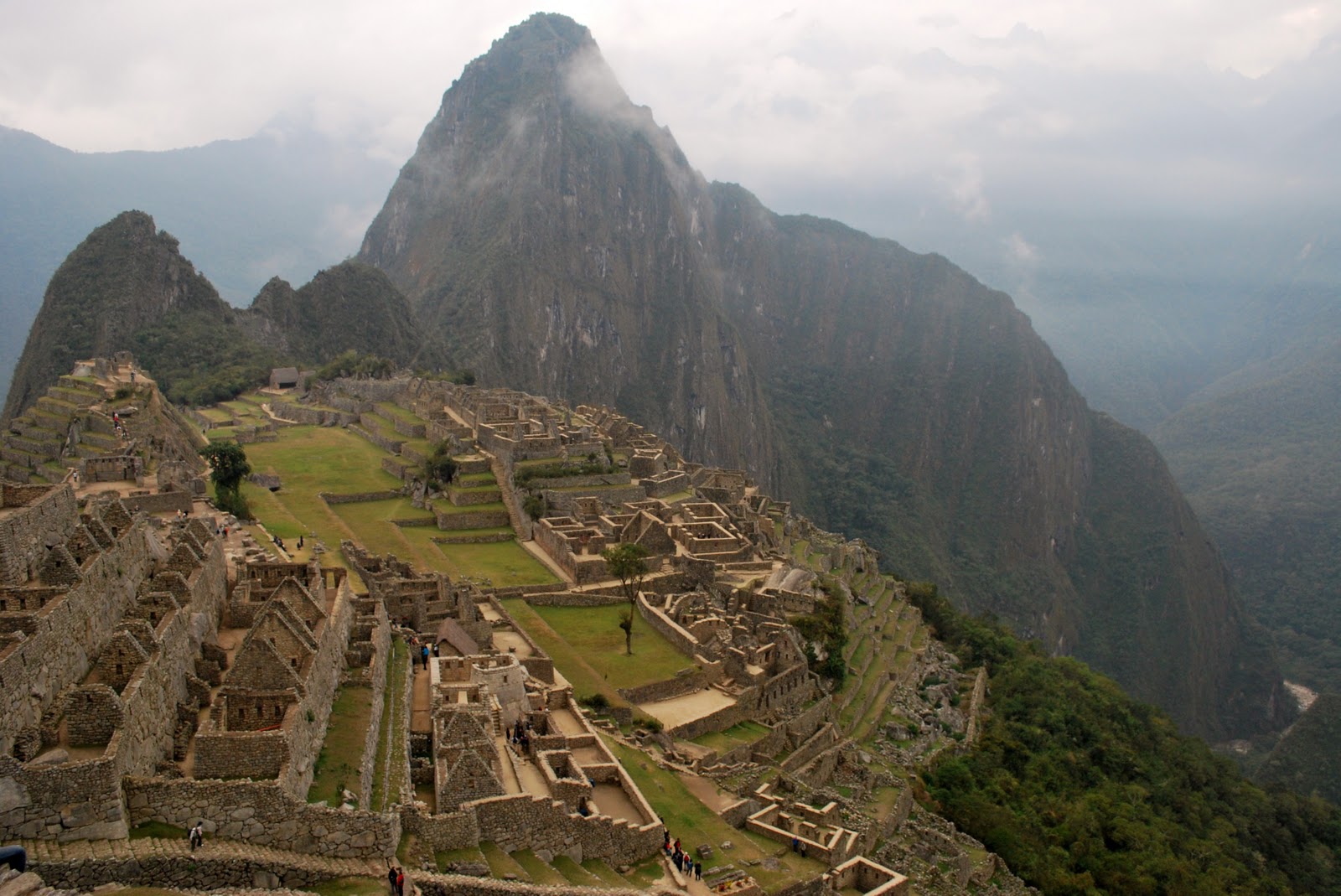 We waited for the "lagger" (one in particular, haha) to catch up at the sungate then slowly headed down to Machu Picchu. There was really no rush now, because the entire site was covered in cloud, and it was 6:30am afterall. Our guide, Ali, let the assistant guides, JC and David lead the tour around Machu Picchu. We were hoping to climb Wayna Picchu (the iconic peak in the background) but it was impossible for Inca-trailers, since only 400 tickets are given out every day, and the lazy people who take bus up from Aguas Caliente at 5:30 (and those who did the alternative Lares trek) snag all the tickets. We could have climbed Machu Picchu mountain (behind the site) but partially because the views were clouded over, and partially because our legs were really dead, we opted out. Luckily, at 7 in the morning, we had the ruins nearly to ourselves (or relatively speaking, considering it's Machu Picchu, and ~1000 people visit it every day). The light wasn't great for taking pictures, but it was neat to get pictures with so few tourists in them, and just to see the magnificent site in general.