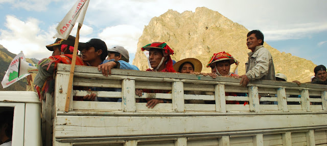 Peru national elections take place on Sunday, October 3rd (tomorrow, actually), and so we have been seeing politcal propaganda everywhere; even painted onto the sides of houses. Below is a group of locals carrying flags for their preferred political party through town. Evidence of the upcoming elections is literally everywhere (including increased bus fares!).