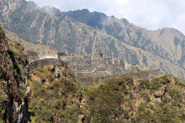 Over the 4 day hike we passed by numerous Inca ruins, where we usually stopped for water/snack breaks and a historical explanation by the guides. In the photo below, you can see the steep stone staircase on the left leading up to the ruins.