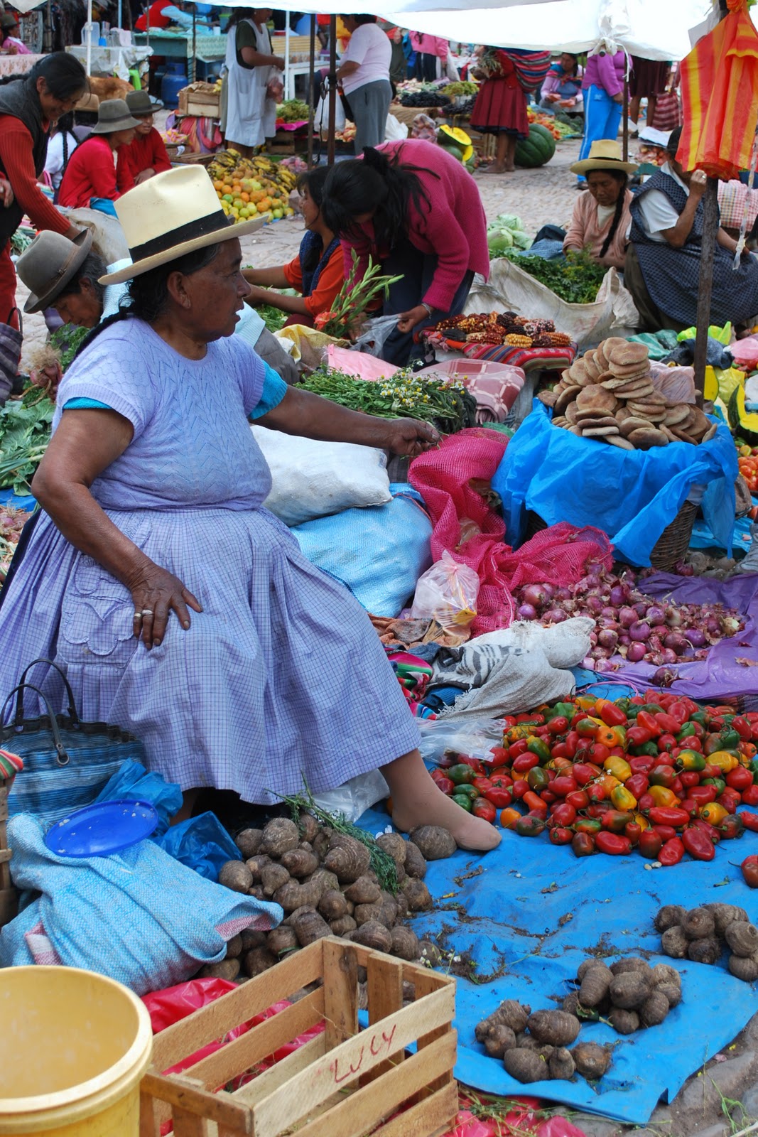 We visited the Sunday market in Pisac too. Vendors littered the streets for blocks (with children and animals in tow) selling everything from powdered dyes, to potatoes, to textiles and batteries.