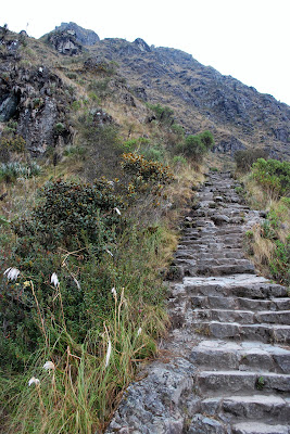 Here is a picture of one of the steeper sections of stairs we climbed. Most of the 40km trail was built by the Incas from huge stones. It never looks as steep as it was when you look at the photos!