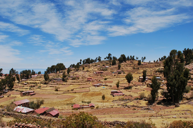 Next we continued on to Taquile island, where we had planned to spend the night. While the island had no hostels, we had heard that you could pay the locals for a "homestay". The elevation of the Lake is 3808 meters above sea level, and it was a strenuous climb to the top of the island.